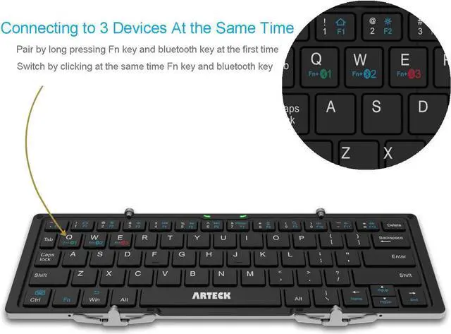 folding and ergonomic bluetooth keyboard, Pocket size, sleek and slim design.