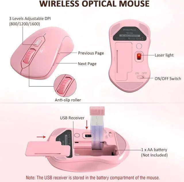 The mouse was optical design, even on some smooth surfaces, precise control can be obtained. 3-level adjustable DPI (800/1200/1600) allows you to choose your favorite moving speed of cursor. In addition, this wireless mouse is symmetry design, no matter you are Right handed Left handed, both hands are available, suitable for all people.
