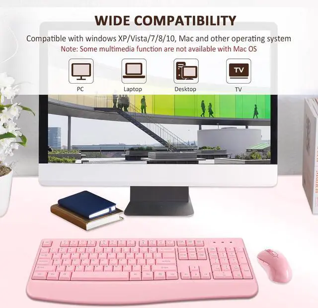 This wireless keyboard and mice combo compatible with windows XP/Vista/7/8/10/X, Mac and other operating system. Works well with desktops, Chrome-book, PC, Laptop, Computer and more.