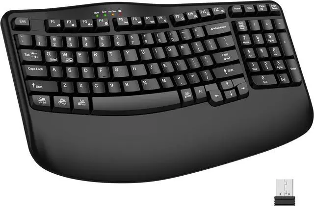 Ergonomic Wireless Keyboard with Wrist Rest, Wave Keys, Comfortable Natural Typing, 2.4GHz Ergo Wireless USB Computer Keyboard for Multi-OS, Windows, Mac OS, Laptop, PC (Black)