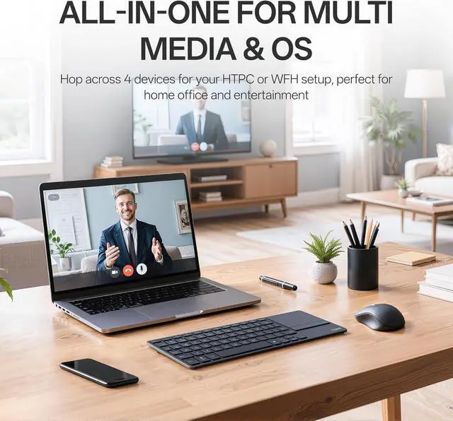 All-in-one Solution for Multi Media and OSFeaturing Bluetooth 5.0/4.0 + 2.4GHz tri-mode wireless connectivity, this portable HTPC keyboard provides a great way to navigate, browse, search or type on your PC-connected TV, tablet, steam deck, gaming console, SBCs, mini pc, phone and other devices with Bluetooth or USB-A port.