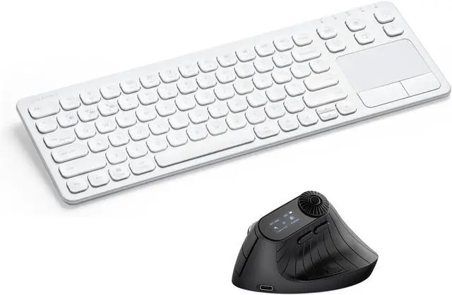 Vertical Mouse + Touchpad Set - This bundle includes a Ergo mouse with LED screen and a touchpad keyboard. Natural vertical angle, promotes a handshake grip to reduce wrist pain, finger numbness, and forearm tension.