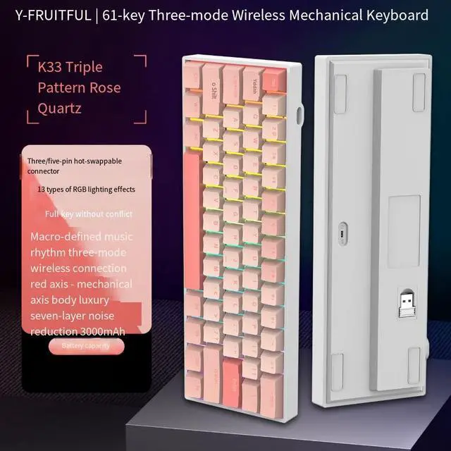 Upgrade your typing experience with the K33 Triple-Mode Wireless Mechanical Keyboard. Featuring 68-key compact layout, hot-swappable switches, 3000mAh battery, and RGB backlight, it's perfect for gaming, programming, and office work.