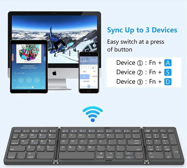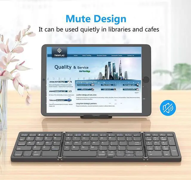 Scissor-Switches Quiet TypingThe quiet and responsive scissor switches low-profile keys offer fluid, laptop-like efficiently typing. A great wireless foldable keyboard that remove over 90% of disruptive sounds and keep the familiar typing feel.