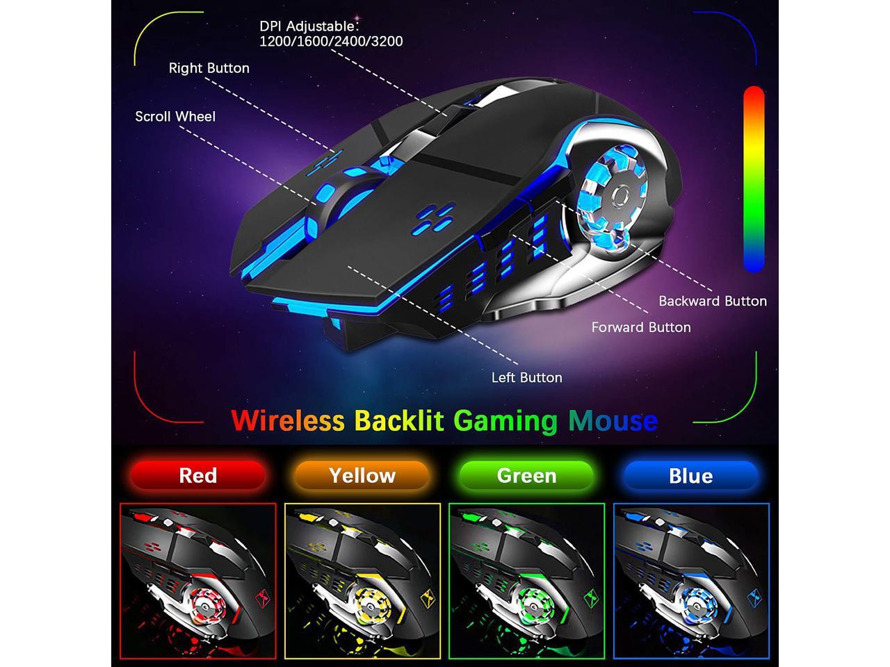 - This wireless gaming mouse has a cool engine shape appearance with 6 button, 7 color breathing LED backlight, 4 level DPI(800-1200-1600-2400), perfect for gaming or work or daily using.