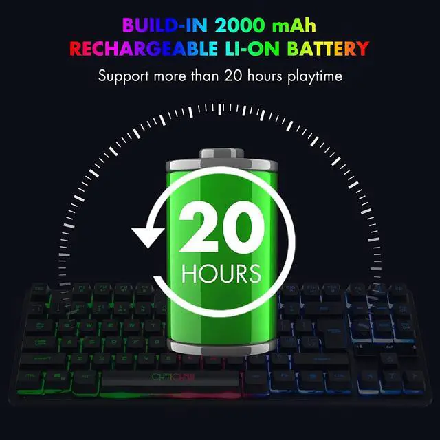 Rechargeable Tenkeyless Keyboard --- 2000mAh rechargeable battery with auto-sleep function and power switch, this keyboard will reduce the frequently you change the battery or charge effectly. 87 keys layout can help people free up the space on table and offer more to mouse moving.