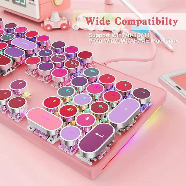Top Quality Metal and ABS construction, Double-shot-molded ABS keycaps, stand up to hardcore gaming. This cute keyboard has good performance both in office and gaming