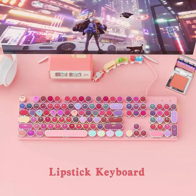 Vintage Style Unique lipstick color round keycaps with a floating-key design in profile bring you a nostalgic feeling with the eye-catching retro aesthetic