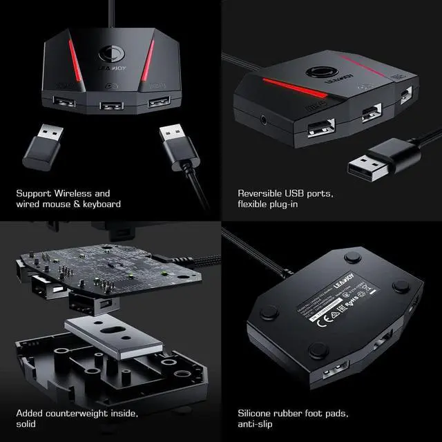Built for Comfort: The Leadjoy VX2 AimBox features 3 reversible USB 2.0 ports for easy mouse and keyboard insertion in any orientation, and a built-in 3.5 mm audio jack (not supported on PS5) for crystal-clear sound quality. No need to worry about noisy surroundings interfering with your gaming.