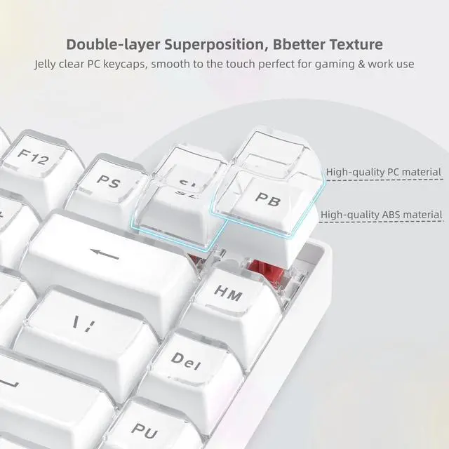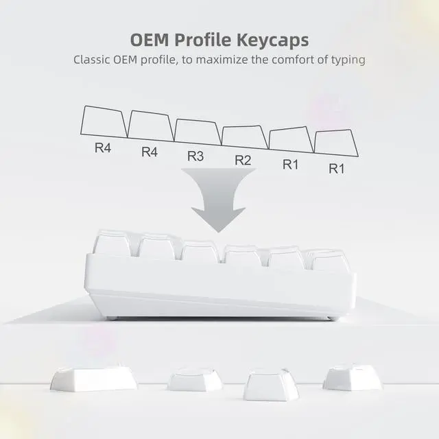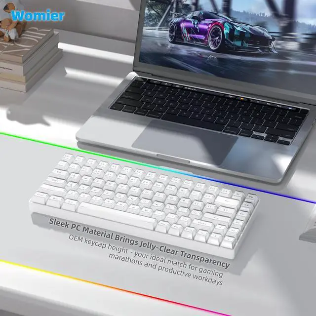 Womier transparent jelly keycaps with a silky PC finish. OEM profile design ensures seamless compatibility for gaming and daily work.