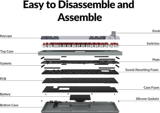 Smoother Typing Experience: In addition to the gaskets on the plates, we added silicone pads between the top and bottom cases to significantly reduce the sound resonance between the metals and reduce the noise of the impacted metals. Weve integrated the PCB-mounted screw-in stabilizers with less wobbliness on the big keys such as the space bar, shift, enter, and delete keys. You can even customize your favorite stabilizers on your own.