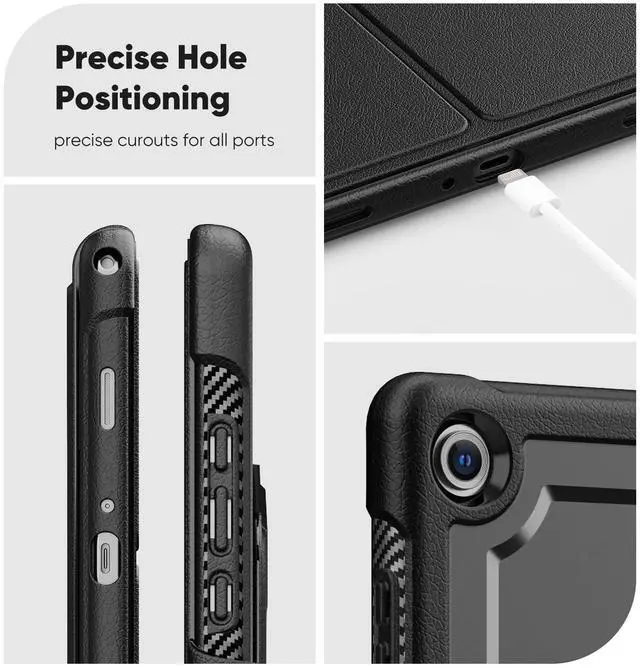[Premium Materials & Sturdy Protection] The case rugged is built with a combination of hard PC back, shockproof TPU frame and premium textured PU leather front cover, features resistance to fingerprints and easy wipe cleaning, and this case protects your tablet well against drops and bumps. Meanwhile, this case also offers seamless protection with precise cutouts for the speaker, camera, buttons and other ports