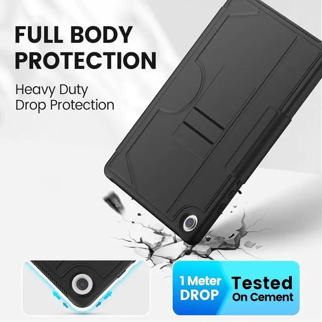[Premium Materials & Sturdy Protection] The case rugged is built with a combination of hard PC back, shockproof TPU frame and premium textured PU leather front cover, features resistance to fingerprints and easy wipe cleaning, and this case protects your tablet well against drops and bumps. Meanwhile, this case also offers seamless protection with precise cutouts for the speaker, camera, buttons and other ports