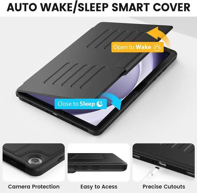 [Auto Sleep/Wake] The case has built-in magnetic strip design, it can ensure fast automatic sleep/wake up every time, while saving a lot of power, reducing charging frequency, easy and convenient to use, protecting and extending tablet battery life