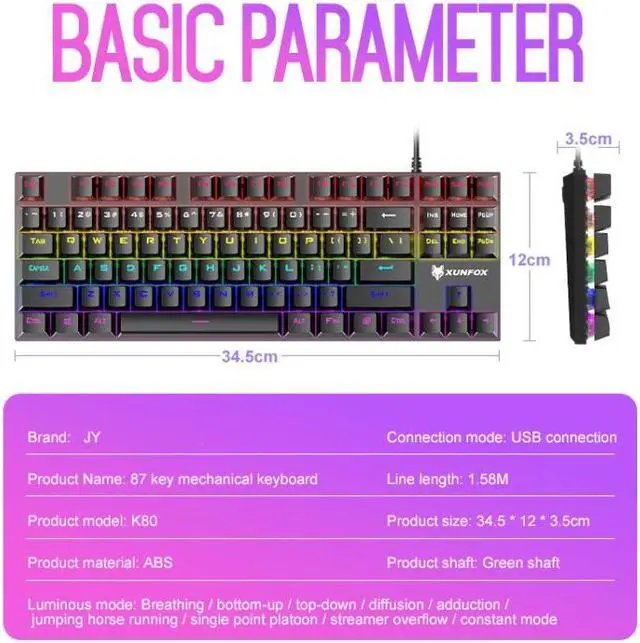 7. Lighting mode: breathing, bottom to top, top to bottom, diffusion, adduction, jumping, single point row, Ambilight, always bright mode