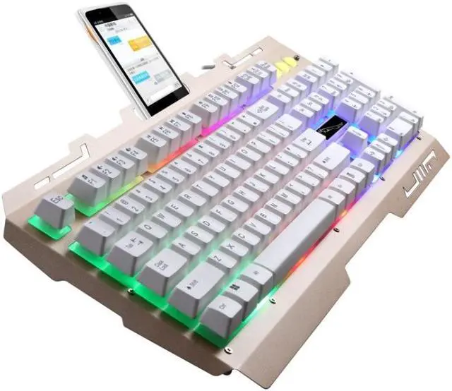 1. G700 backlight suspension gaming keyboard 2. Phone holder design, allows you to put the phone in the visual range 3. Suspended buttons, mechanical feel, laser engraving characters 4. Ergonomic design