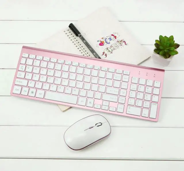 Wireless Keyboard and Mouse Combo, 2.4GHz Ultra Thin Full Size Wireless Keyboard Mouse Combo Set with Number Pad for Computer, Laptop, PC, Desktop, Notebook, Windows 7, 8, 10-(Pink)