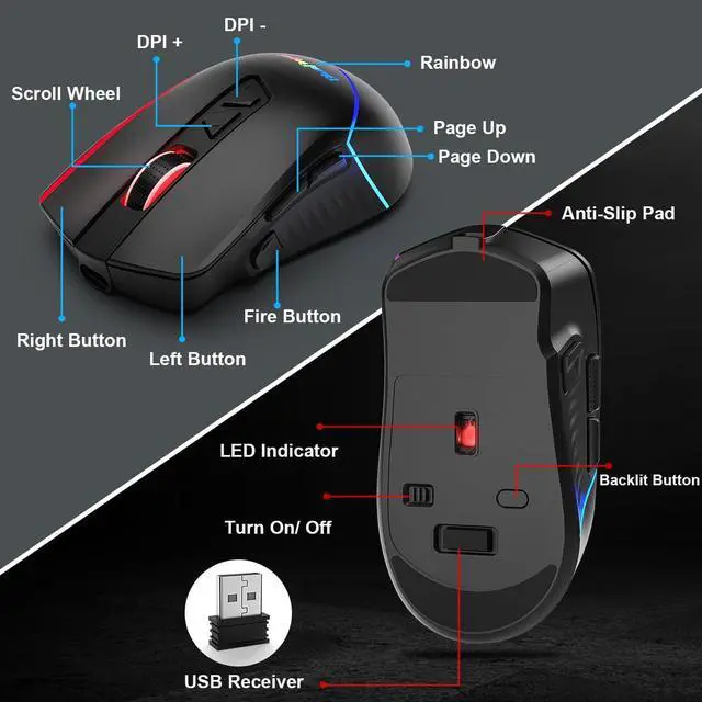 RGB Gaming Keyboard and Mouse: The wireless keyboard with 7 colors+ RGB Rainbow lighting, gorgeous backlit effects to choose; 4 level of backlight brightness and breathing speed; The mouse has a built-in 7-color cyclic gradual lighting effect. Offer unique visual experience and cool game atmosphere. The clear light-up letters make it easier to find your keys in the dark.