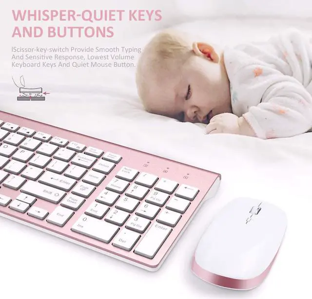 Less noise and Smooth Typing- The keyboard' s noise reduced keys and the silent click of the mouse will allow you to do your works of quiet environment; Scissor-key-switch provide smooth typing and sensitive response; Slope angle ergonomic design for comfortable use feeling, reduce hand fatigue