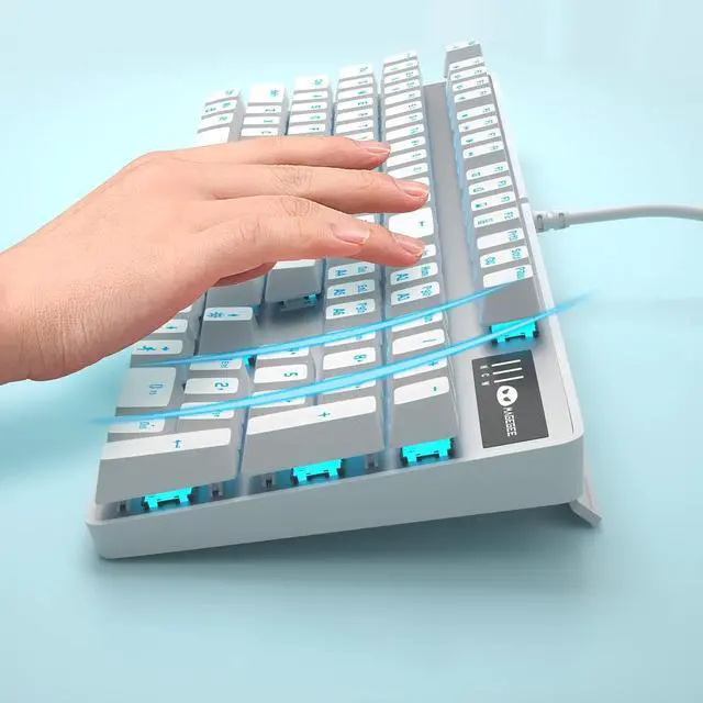 Professional Blue Switches: gaming keyboard is equipped with Blue switches, which are linear, top-to-bottom switches. These switches require less force to press down and the keys feel smoother and easier to use. No tactile " bump" but responsive. A great choice for work and play!