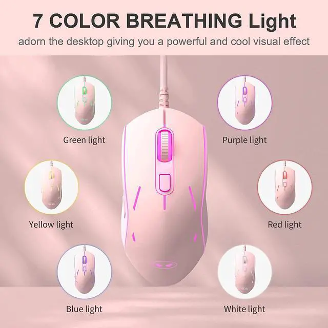 7 Colors Breathing Backlight SystemThe gaming mouse has 7 dazzling color breathing backlight, supports 6 levels of sensitivity adjustment (600-3200), and has internal indicator lights, so when you are playing games, you can play at high sensitivity mouse, move faster on your screen, do some quick responses and give you an unparalleled sense of gaming experience.