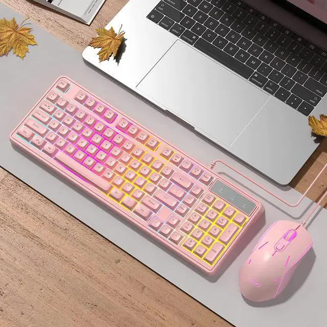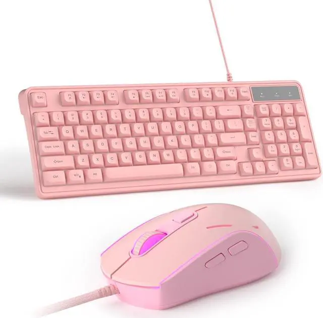 • Comfortable Typing Experience and Full 98 Keys Anti-ghostingMageGee pink keyboard, that responds fast with no lag, this gaming keyboard and mouse combo will offer you wonderful tactile feedback on each keypress. The stepped layout can also provide you with an ergonomic angle for typ