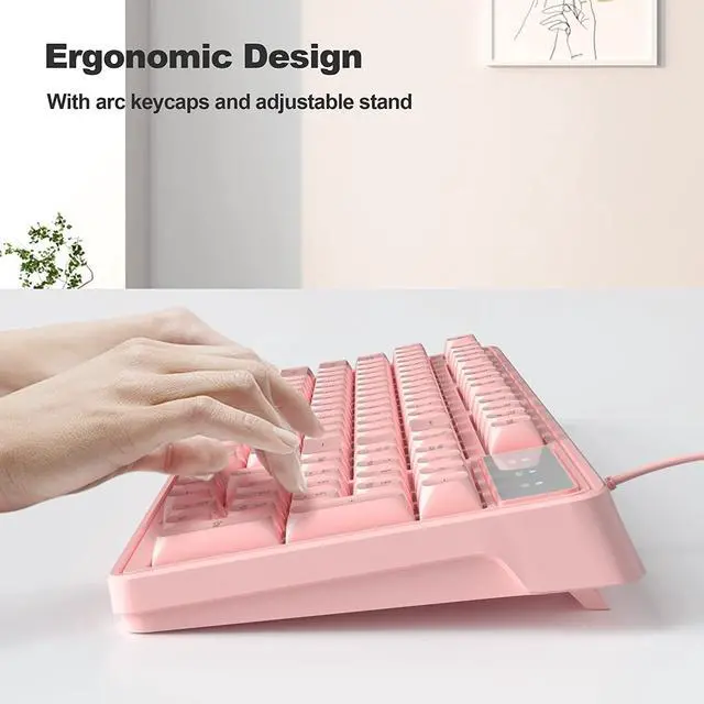 Comfortable Typing Experience and Full 98 Keys Anti-ghostingMageGee pink keyboard, that responds fast with no lag, this gaming keyboard and mouse combo will offer you wonderful tactile feedback on each keypress. The stepped layout can also provide you with an ergonomic angle for typing. Advanced anti-ghosting technology allows all 98 keys to work simultaneously to provide a fast typing response.