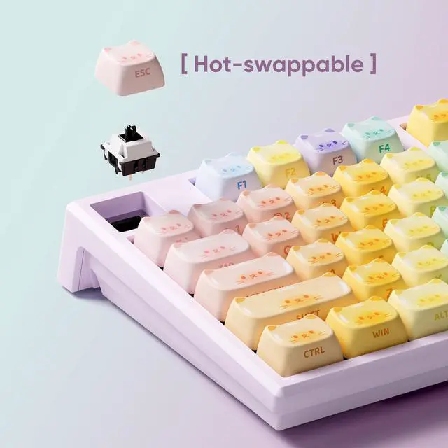 Colorful Cats Keyboard: Akko has partnered MonsGeek to release this full size original colorful cats keyboard features a cat-ear-shaped design and rainbow colors, bringing whimsical charm to your keyboard