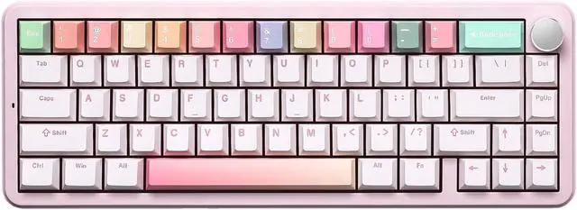 RGB Backlighting & Rainbow PBT Keycaps: Brighten up your workspace with the B68s colorful RGB backlighting and south-facing LEDs. This rainbow keyboard also includes durable double-shot PBT keycaps, along with additional gradient rainbow keycaps, allowing you to personalize your setup to match your aesthetic keyboard style. Beyond the built-in lighting presets, you can further customize the keyboard's functions and RGB settings through the software, giving you complete control over this custom keyboard.