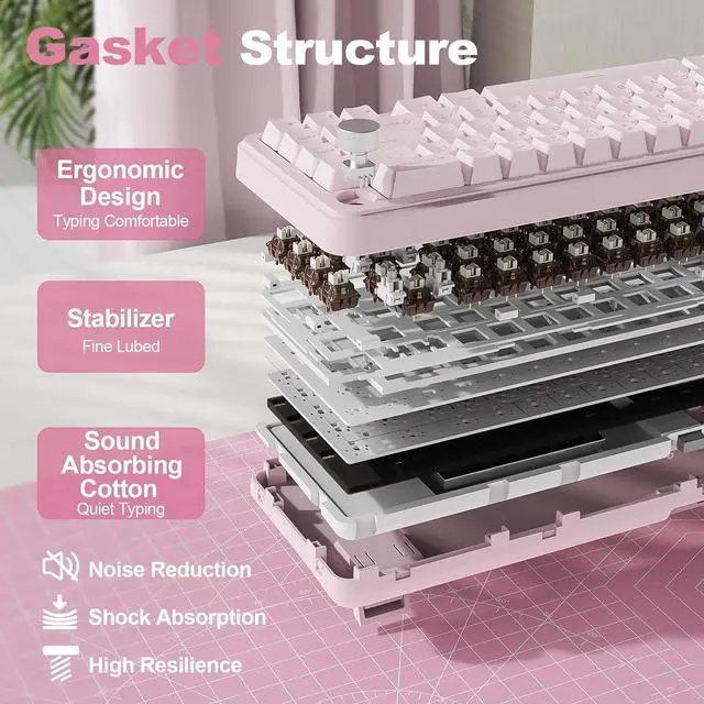 • Gasket Mount Design with Five-Layer Padding:Experience a quieter and smoother typ