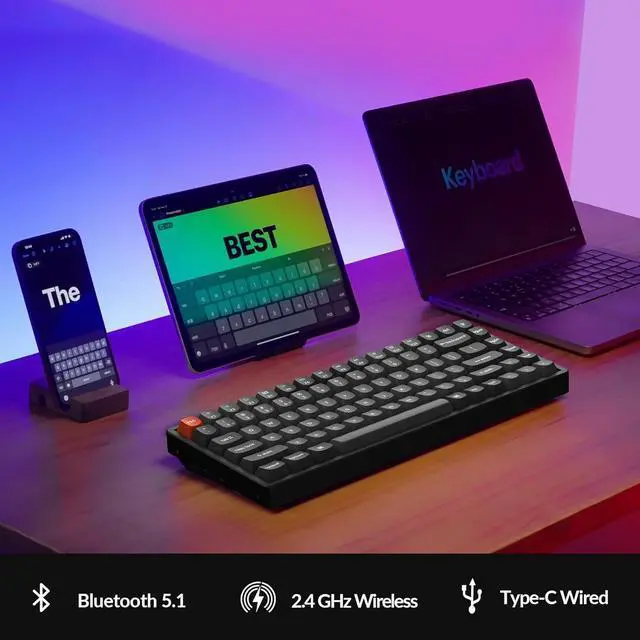 Tri-Mode Wireless Mechanical Keyboard: The Keychron K2 Max is a 75% layout keyboard with 2.4G wireless, Bluetooth 5.1, and Type-C wired modes. Connect up to 3 devices and seamlessly switch between your laptop, tablet, and smartphone via Bluetooth. With a 1000Hz polling rate in 2.4G and wired modes, it's perfect for gaming and work.