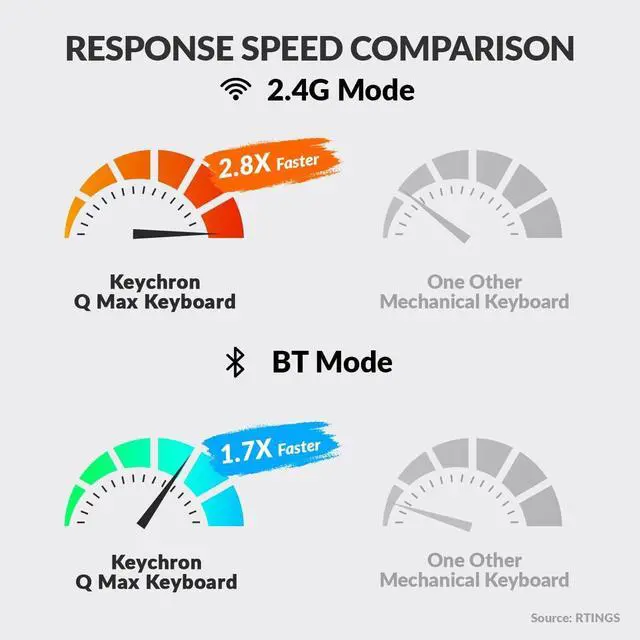 2.4 GHz and Bluetooth Connection - The 2.4 GHz wireless and wired connection boasts a rapid 1000 Hz polling rate. You can also connect the Q2 Max with up to 3 devices via a stable Bluetooth 5.1 for seamless multitasking.