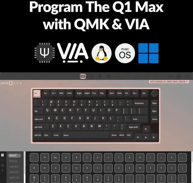 Keychron Q1 Max RGB QMK/VIA Custom Mechanical Keyboard, Hot-Swappable Full Metal Programmable Knob with Gateron Jupiter Red Switch, 2.4 GHz/Bluetooth/Wired Gaming Keyboard for Mac Windows Linux