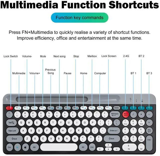 unction key command direct: Press FN+ multimedia to quickly realize various shortcut opration functions and improve efficiency.