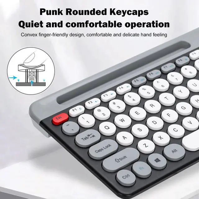 lulti-channel connection: 2.4G wireless and BT 3 channels, can connect four devices at te same time, one-key switch, suitable for mobile phones, laptops, tablets, etc.