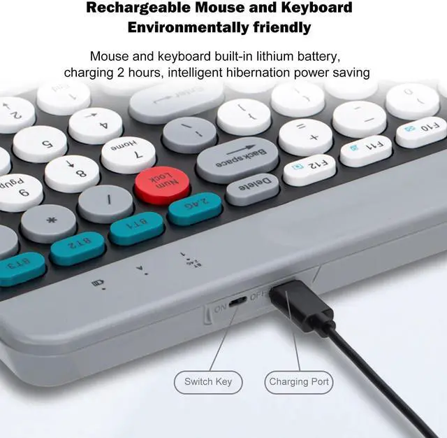 lechargeable design: The keyboard and mouse have built-in lithium batteries, charge forhours,intelligent sleep power saving.