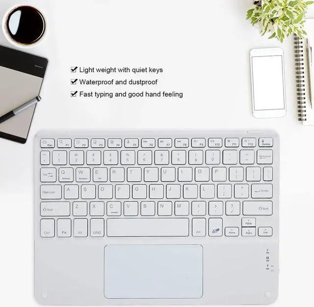 • 10INCH KEYBOARD: 10inch widened and enlarged processing, possess more and wider keys than ordinary 7inch keyboard, which brings a better user experience, Scissor keyboard bring fast typing and good hand feeling. Light weight with quiet keys, and