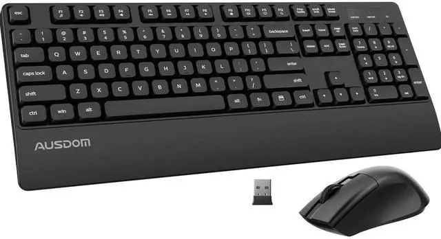 AUSDOM Wireless Keyboard and Mouse Combo, 2.4G hz Ergonomic Silent Keyboard Mouse, Full-Sized Cordless Membrane Keyboard with Palm Rest for Windows, Mac, PC, Laptop, Adjustable DPI Mouse, USB Receiver