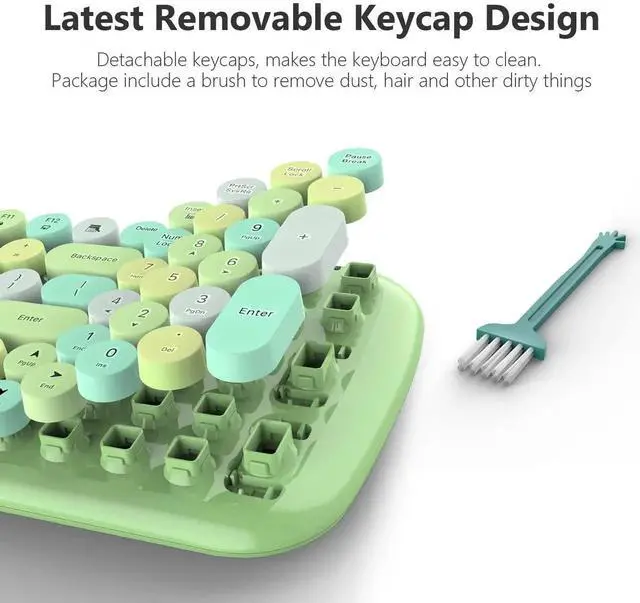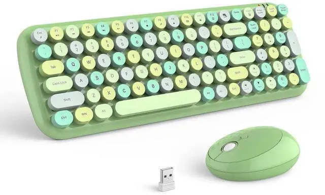 MOFII Wireless Keyboard and Mouse Combo, 2.4GH z Retro Typewriter Keyboard and Cute Mouse for Computer PC Desktops Laptop Windows (Green Mix)