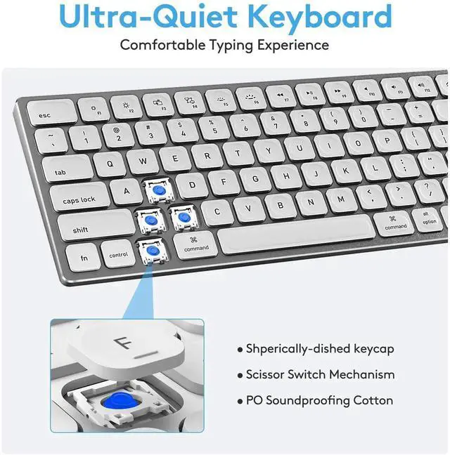 Effortless Precise Typing: The scissor-switch keycaps feature a spherical dish shape and UV coating, providing a perfect touch for your fingertips, reducing work fatigue while typing on the Apple compatible