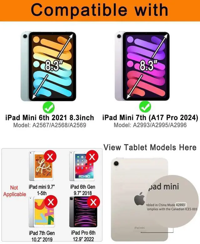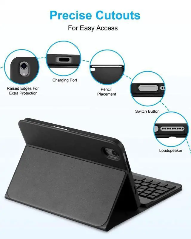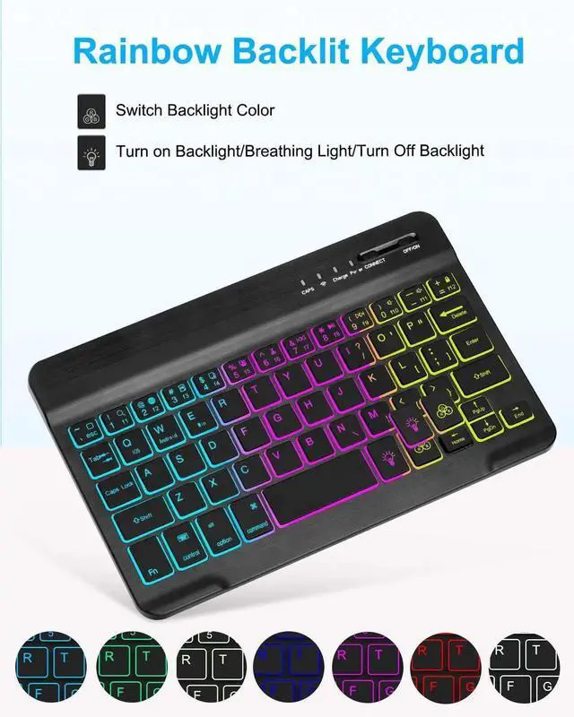 EAMPANG Case with Keyboard Mouse for iPad mini 7th(A17 Pro, 2024)/6th Generation 8.3 inch, 7 Color Rainbow Backlight Detachable USB-C Keyboard Magnetic Case with Pen Slot for iPad mini 6 7 Black