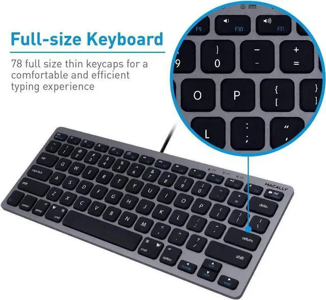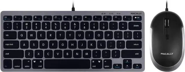 Includes an ergonomic compact wire keyboard, designed with 78 keys and 13 Apple shortcut keys, super easy to set up, save space and looks great. Features a computer mouse designed for precision, comfortable control, and smooth scrolling. Always depend that your wired computer mouse will not lag or die on you.