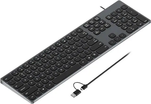 9H Aluminum USB Wired Keyboard with Numeric Keypad for PC Windows 10/8 / 7 / Vista/XP