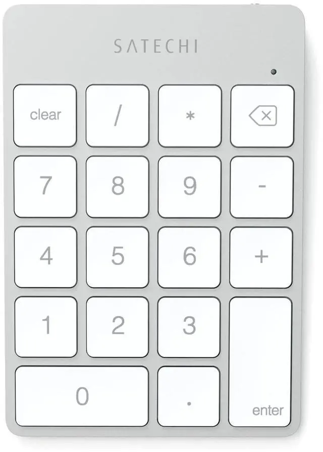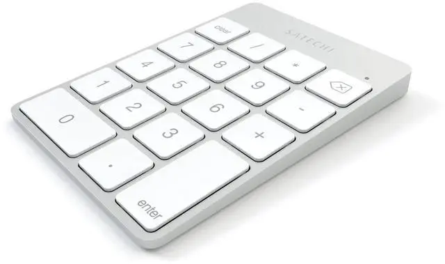 Satechi Slim Aluminum Bluetooth Keypad, Wireless Number Pad with 18 Keys, Micro USB Rechargeable Numpad, External Number Pad for MacBook Air/Pro M4, iPad Air/Pro M4/M3, iMac, PC - Silver