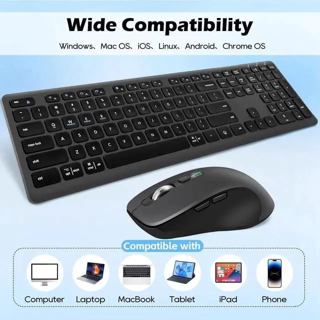 More Bluetooth Options: Besides the USB connection, both the mouse and keyboard feature 2 additional Bluetooth channels. Users can easily choose their preferred connection method. The built-in device switch button allows for quick switching between multiple devices.