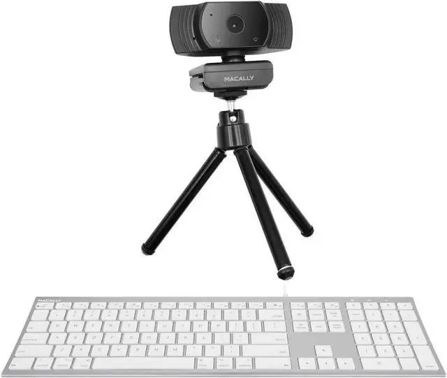 Includes a Mac wired computer keyboard that has a sleek aluminum base and ice white finish keys, it's more reliable and easier to use than a wireless Keyboard. Comes with a high resolution webcam that has a built in microphone with a crisp audio. Zoom essentials.