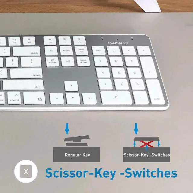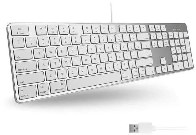 Includes a slim wired keyboard for Mac & PC, designed with low profiles keys, reliable wired connection, and an ultra slim body. Comes with an aluminum ergonomic laptop stand that improves posture and cools down laptop. Designed at the ideal eye level angle, prevents hunching over your laptop screen.