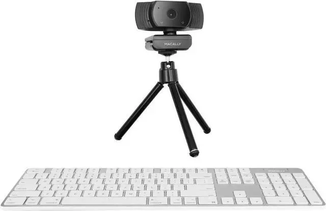 Includes a slim wired keyboard for Mac & PC, designed with low profiles keys, reliable wired connection, and an ultra slim body. Comes with a high quality webcam that has auto light balance, color correction, built-in omnidirectional microphone, and a crisp audio.