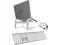 Includes a wired Apple keyboard with a sleek aluminum base and ice white finish keys. Comes with a quiet wired mouse and a sturdy aluminum laptop stand. Complete your office with these essentials.