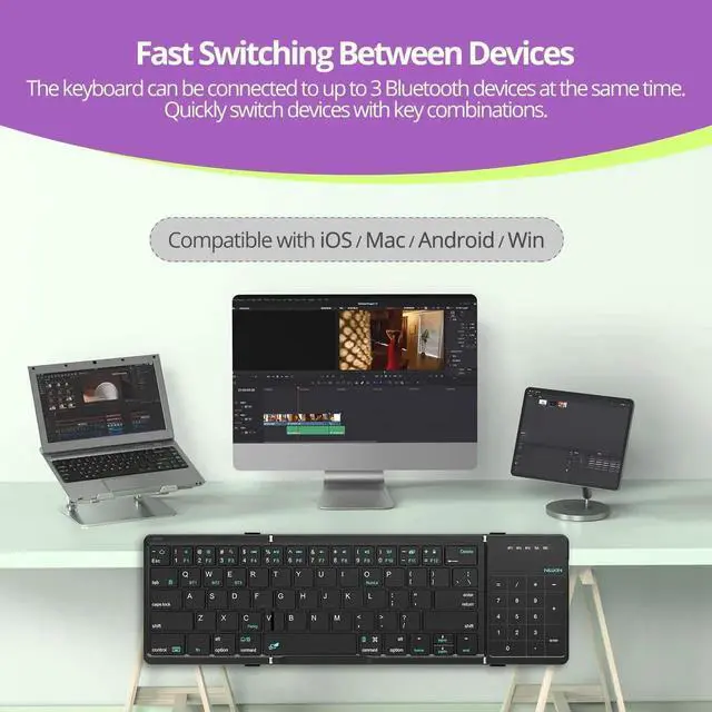 Nillkin Pocket Foldable Keyboard with Touchpad & Wireless Bluetooth, Portable Travel Keyboard for Home or Mobile Office Replaces Keypads and Mouse Combo, Compatible with iPad, Laptop, Tablet - Black